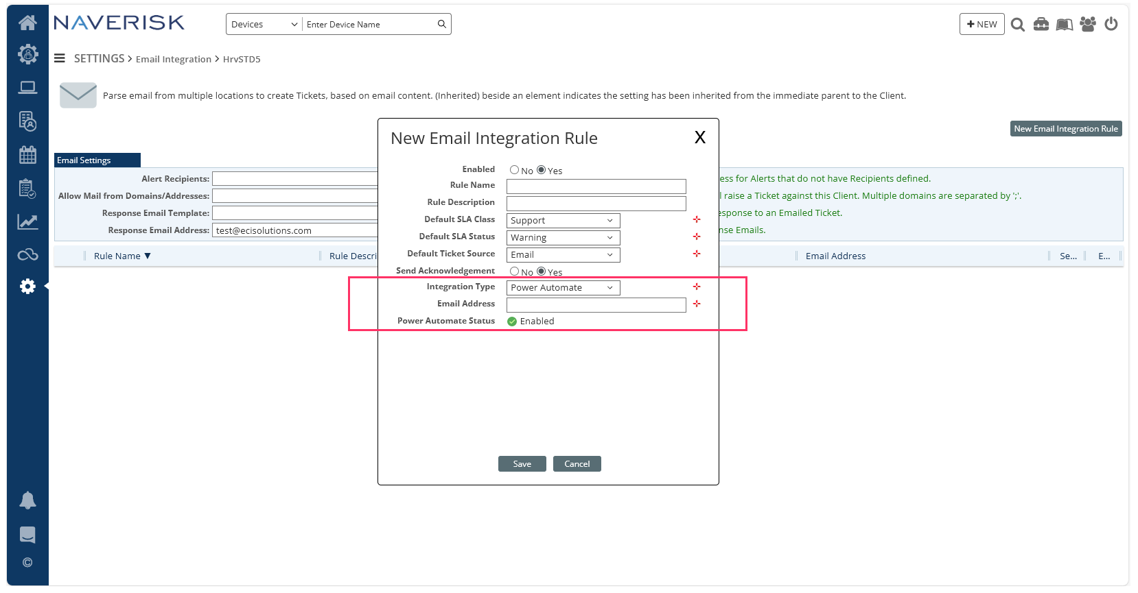 Added an option to configure email integration using the new Naverisk connector in Power Automate.