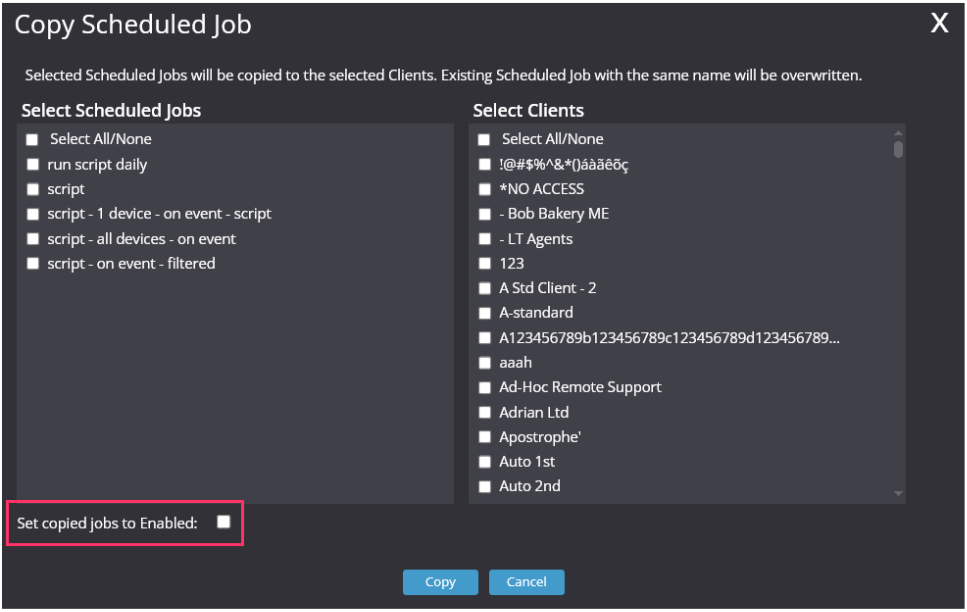 When copying a scheduled job, you now have the explicit option to enable the new copy immediately during the creation process.